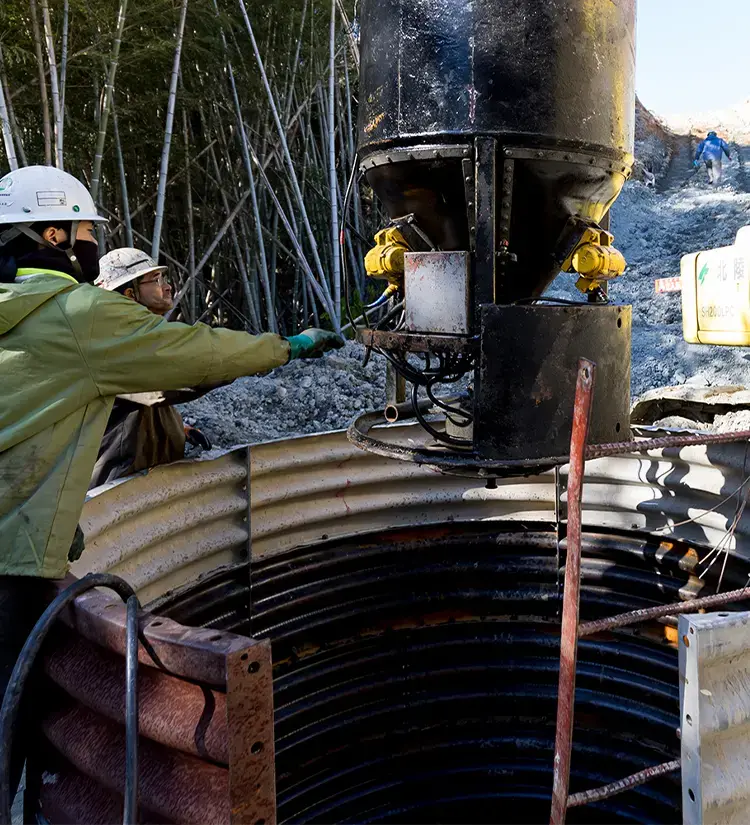 当社は中四国を中心に、高速道路や自動車道、トンネルの建設基礎工事を700件以上施工してまいりました。豊富な工法であらゆる杭径と深度で、厳しい施工条件に対応できる強みがあります。